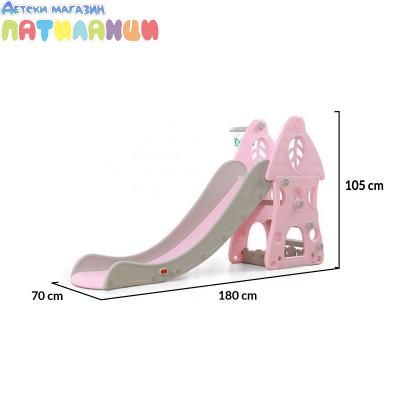 Със своя свеж розов дизайн и вграден баскетболен кош, тази пързалка е идеалното допълнение към всяка детска стая, двор или градина.