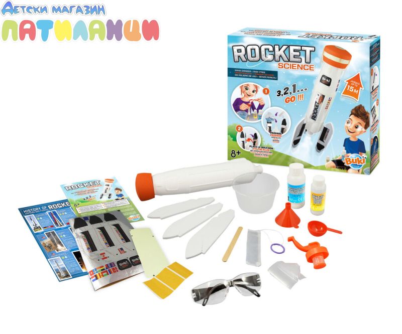 Ако вашето дете е запалено по науката и по-специлано ракетите и Космоса, то тогава тази играчка е точно за него. С този комплект на Buki France вашият малчуган може сам да си сглоби ракета, която да изтреля на цели 15 метра. С тази игра ще развие фината си моторика, любовта към науката и въображението си.