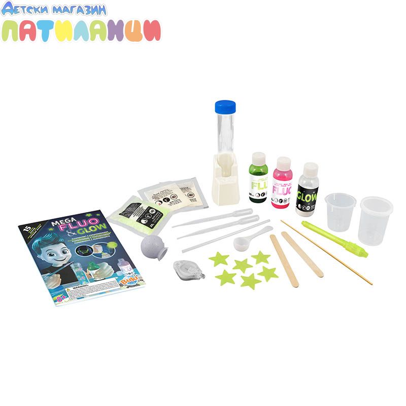 Много аксесоари са включени за провеждане на експериментите: слуз на прах, UV лампа (включена батерия)