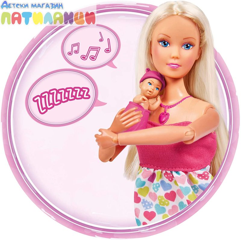 - Steffi Love New Born Baby е модна кукла; благодарение на звуците, включени в куклата и доставените аксесоари, ще можете да изживеете преживяването да бъдете истинска майка