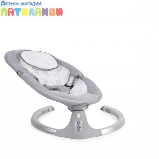 Има 5 скорости на люлеене, таймер с 3 времена, 12 прекрасни мелодии, 3-точков колан, сенник с мрежа против насекоми с 2 меки играчки и функция “шезлонг“ при застопоряване на механизма. Тапицерията може лесно да бъде свалена.