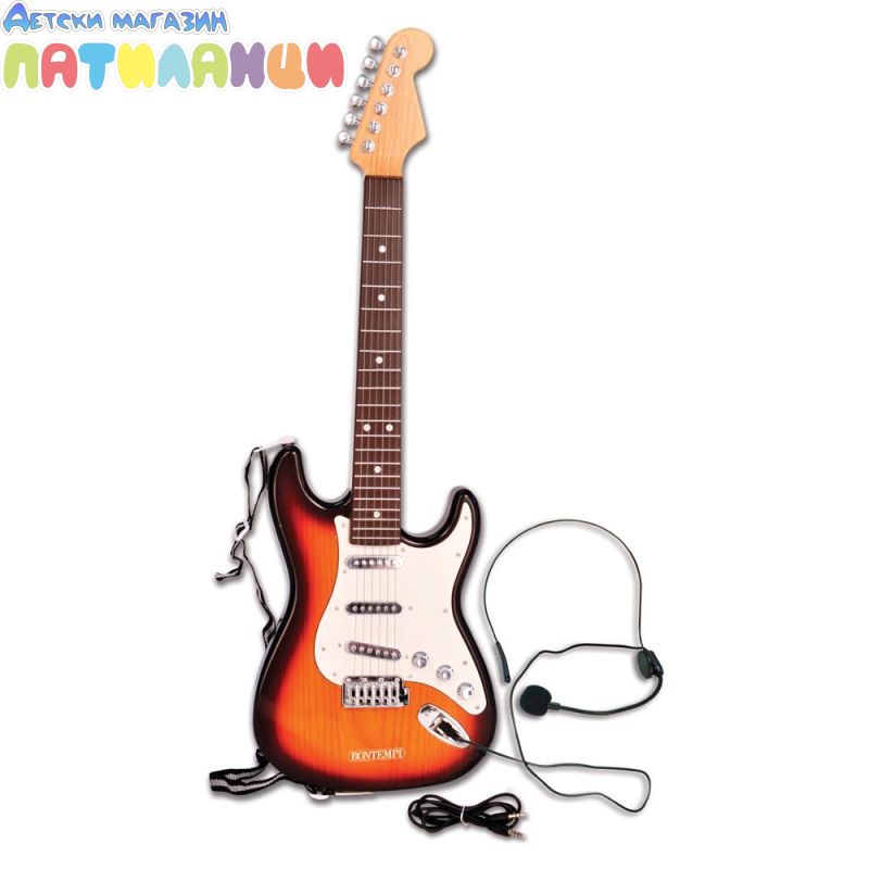 Име: 6-струнна електрическа китара Bontempi с каишка за каска и микрофон