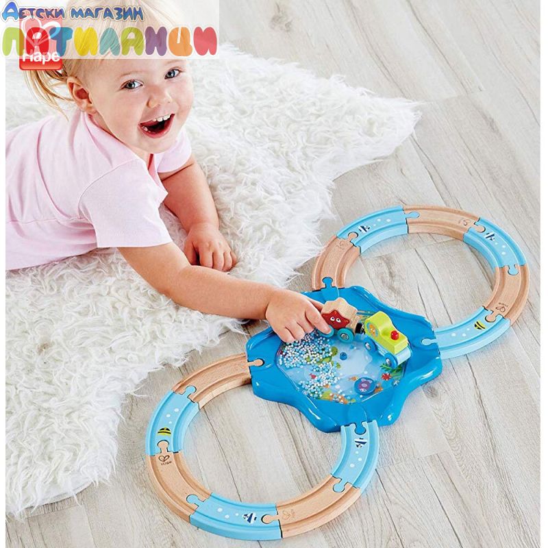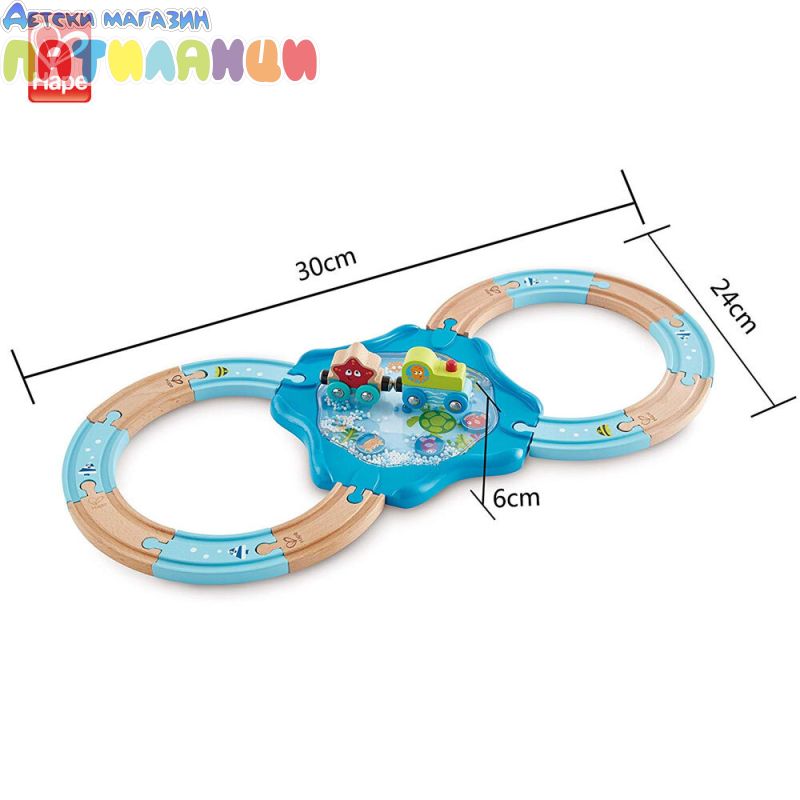 Знаете ли, че влакчето може да премине през водата на морета и океани? Дали това наистина е възможно? С пистата осморка на Hape това е напълно възможно.