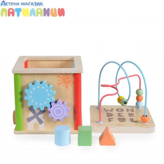 Образователен детски сортер, с множество функции подпомагащи развитието на детето от съвсем ранна детска възраст.