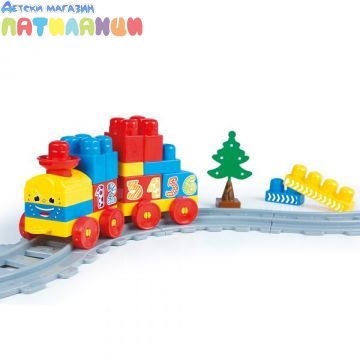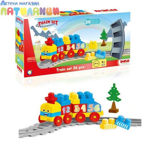 Страхотно детско влакче от Dolu, което пристига в комплект от 36 части, за да забавлява и учи децата. Влакчето може да се сглобява и да се кара по релсите. То се състои от локомотивче и вагон, на които са нарисувани числа. В комплекта малчуганите ще открият още релси, дърво и няколко тухлички. Играчката е изработена от висококачествена пластмаса. Сглобените релси са с дължина 145 сантиметра.