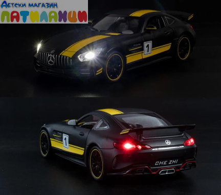 Метален автомобил със звук и светлини Mercedes AMG GTR 1/24 white