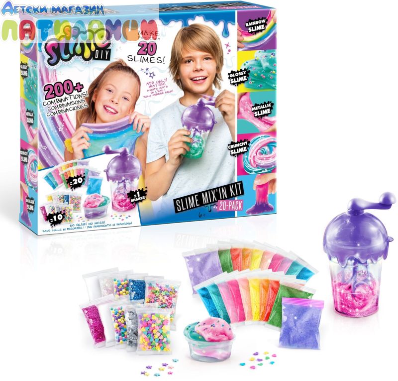 С творческия комплект от Canal Toys всяко дете ще може да си направи над 200 комбинации от разноцветен слайм. Комплектът включва всичко необходимо за създаване на невероятни творения.