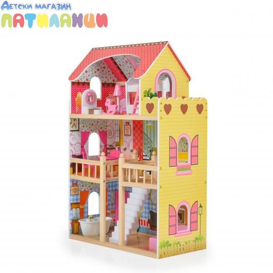 Дървена къща за кукли с обзавеждане EMILY Moni Toys 8209