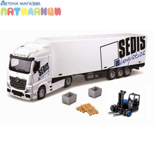 Метален камион Mercedes Benz Actros с мотокар Bburago 1/43