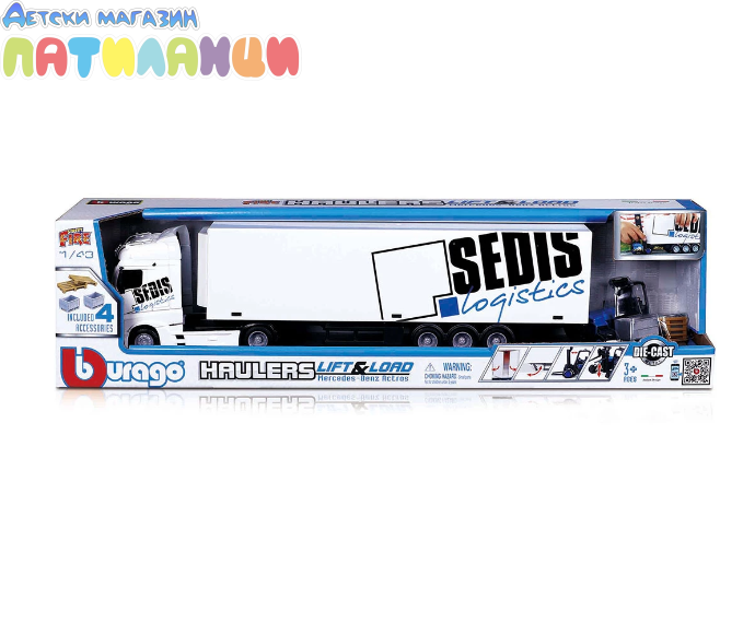 Име: Bburago 18/31471 - 1:43 Street Fire Haulers Lift & Load - MB Actros Hauler с ремарке
