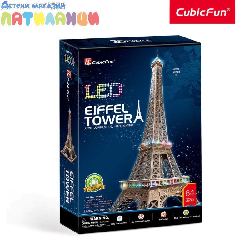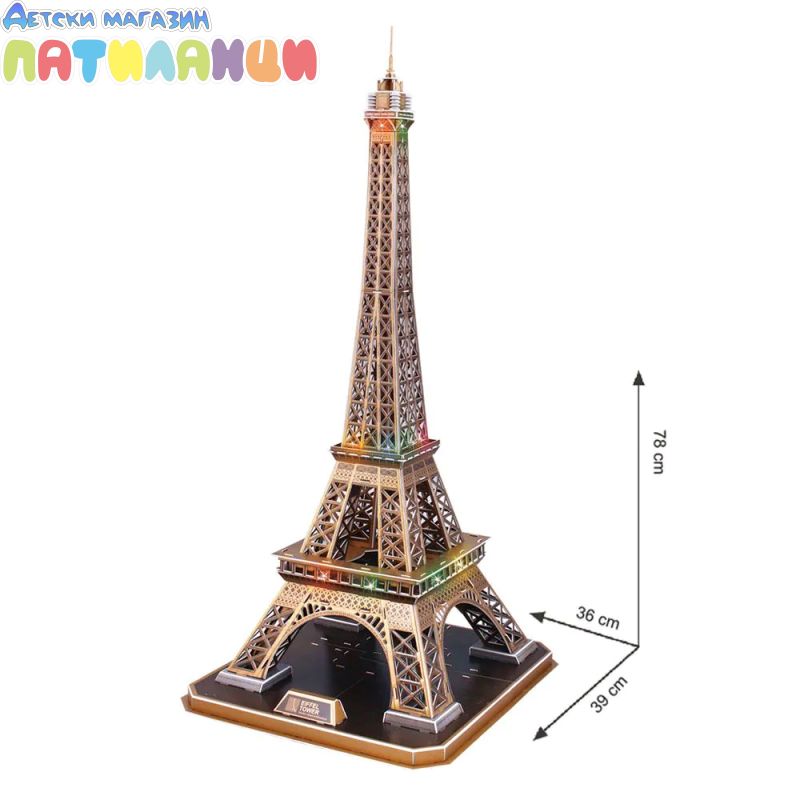 3D Пъзел с LED светлини EIFFEL TOWER CubicFun L091h