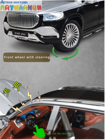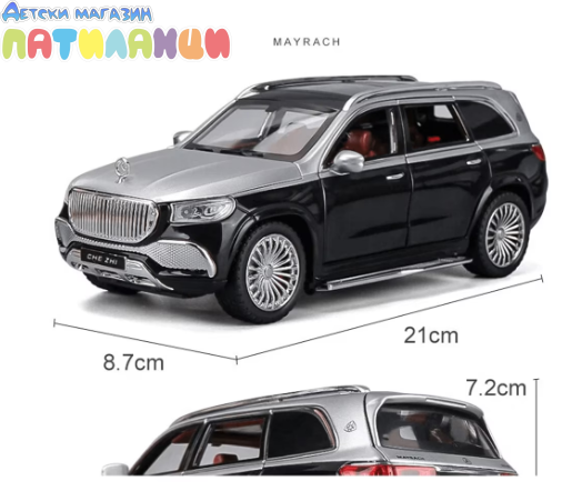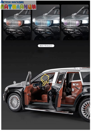 Метален автомобил Mercedes Maybach GLS 600 със звук и светлини 1/24 сив
