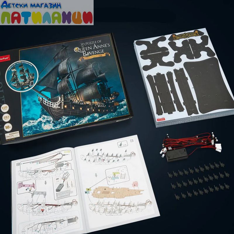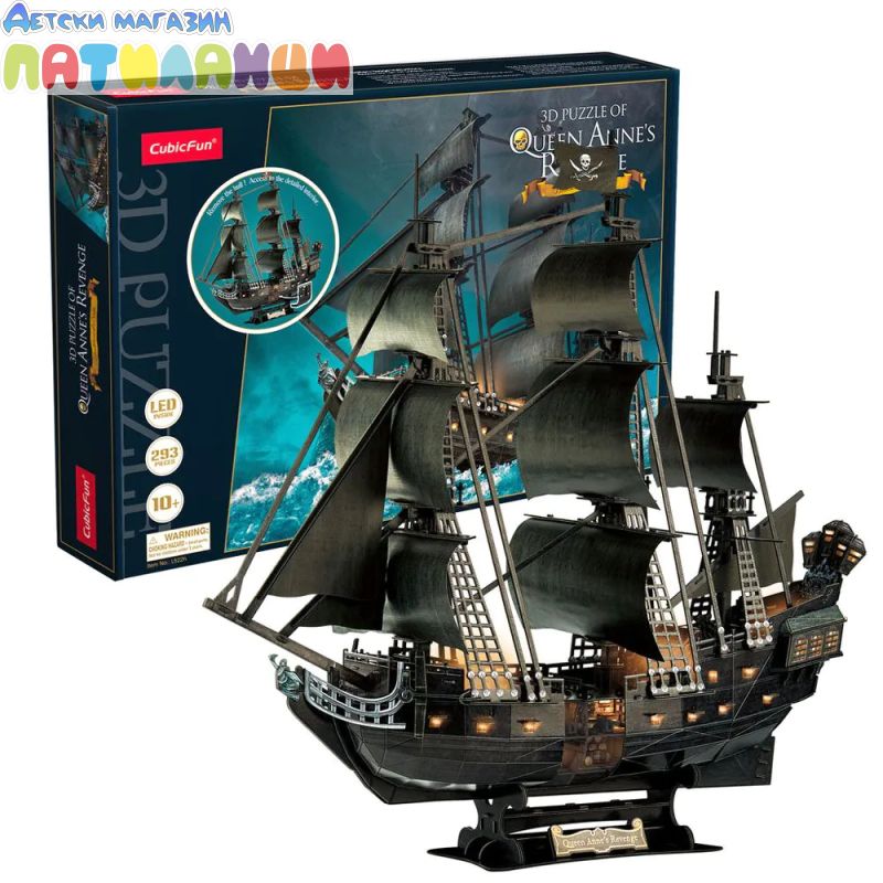 Пъзел 3D Queen Anne's Revenge 293ч. с LED светлини CubicFun L522h