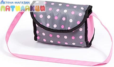 Количка за кукли SMARTY с чанта и прибори за хранене сиво розова BAYER 12266AB