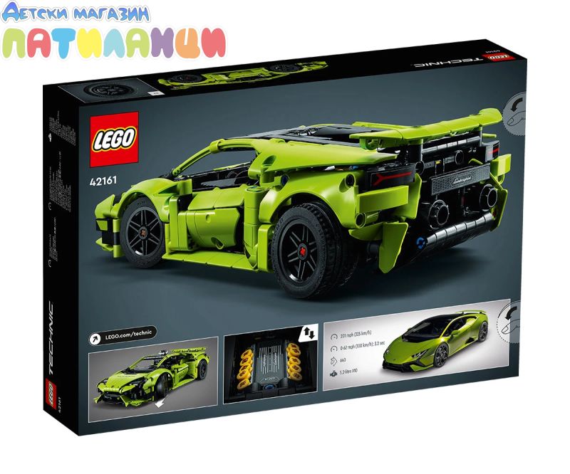 Децата на възраст над 9 години могат да се насладят на удовлетворяващ строителен проект, докато сглобяват всички детайли на реалистичния модел Lamborghini Huracán Tecnica (42161). Неговите автентични детайли са проектирани така, че да развълнуват феновете на супер спортните коли, и благодарение на V10 двигател, отварящи се врати и кормилно управление. Комплектът е страхотен подарък за рожден ден или всекикъв повод за дете, което мечтае да притежава Lamborghini. Страхотно въведение в техниката Моделите за конструиране от LEGO® Technic се отличават с реалистично движение и механизми, които въвеждат строителите на LEGO във всичките на техниката по достъпен и реалистичен начин. Пригответе се за лесно и интуитивно строително включване с приложението LEGO Builder. С него децата могат да компютърират и завъртят 3D моделите,