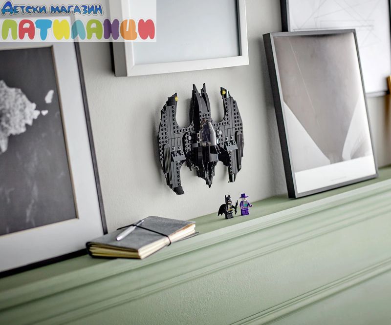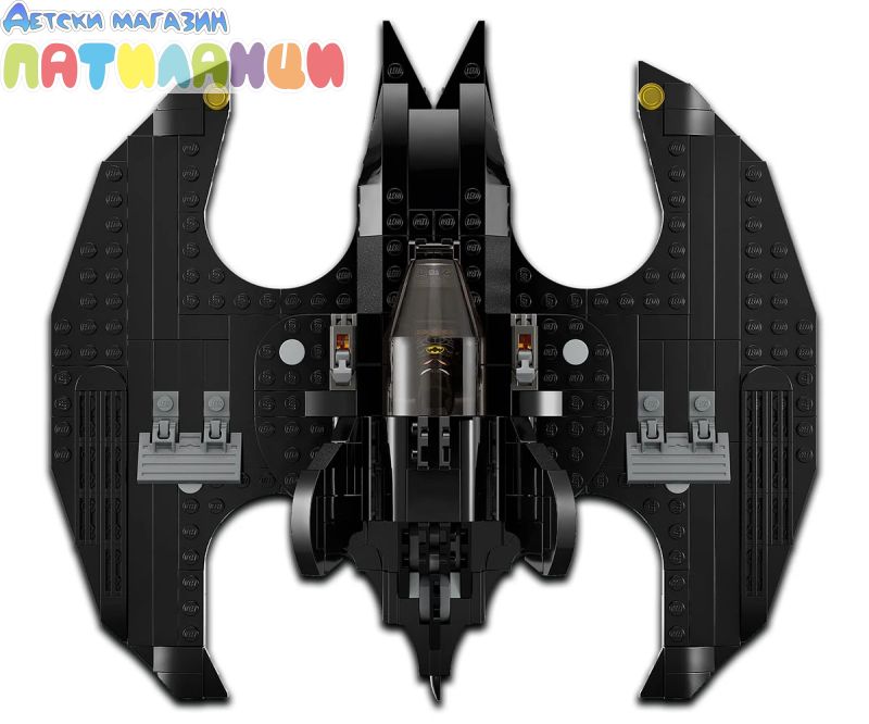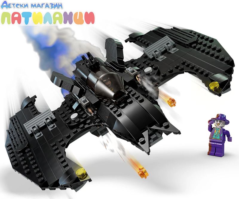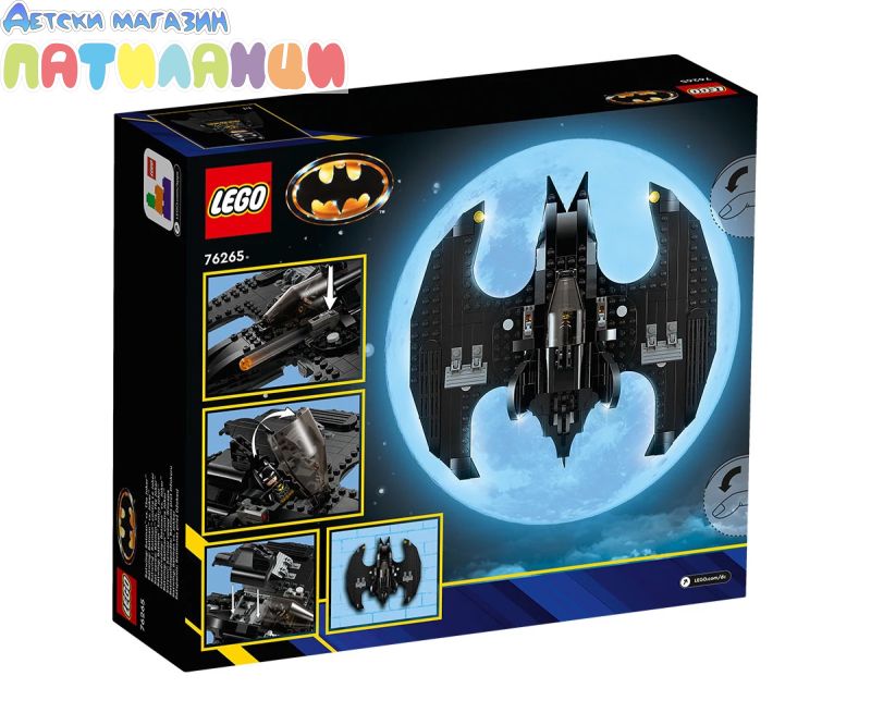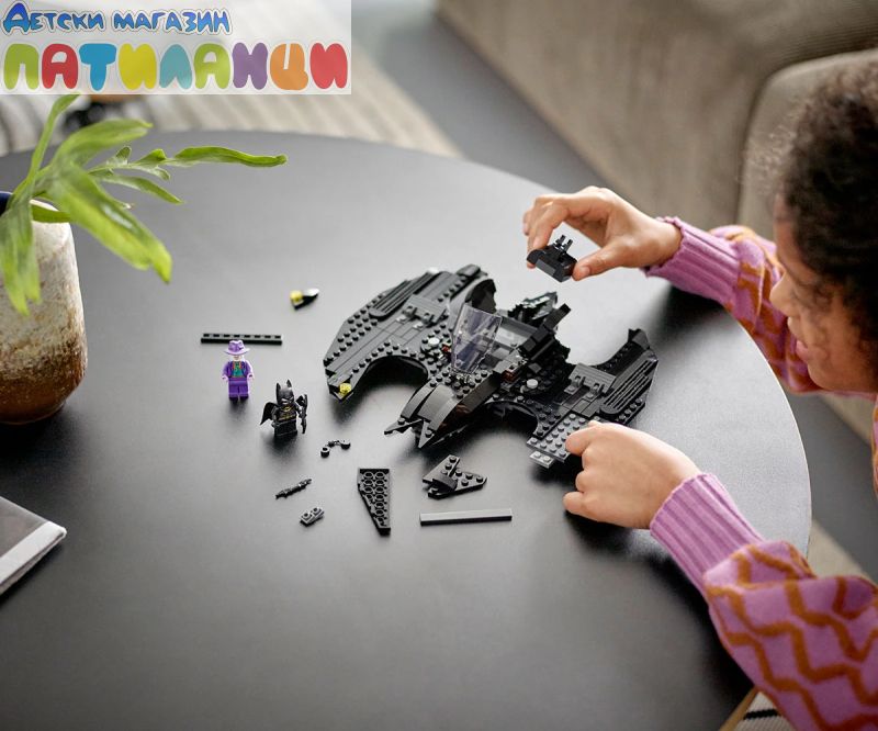 изобразете класически екземпляр от филма „Батман“ от 1989 г. в ръцете на децата с LEGO® DC Батуинг: Батман срещу Жокера (76265). С емблематични герои и безкрайни приключения високо в небето, многофункционалният комплект за игра ще зарадва малките супергерои на възраст над 8 години. Самолетът на Батман за игра и показване Децата се присъединяват към Батман и Жокера за битки по и над улиците на ГОТЪМ СИТИ. Батуингът с автентични детайли разполага с 2 изстрелващи устройства и кабина за минифигурата на Батман. Отделението за съхранение зад кабината съдържа батарангите и белезниците на Батман. Моделът има вдлъбнатина от долната страна, която позволява да се окачи на стената, когато не е в действие. За допълнително цифрово забавление строителите могат да направят грешка, да завъртят комплекти в 3D и да проследяват напредъка си с помощта на забавното,