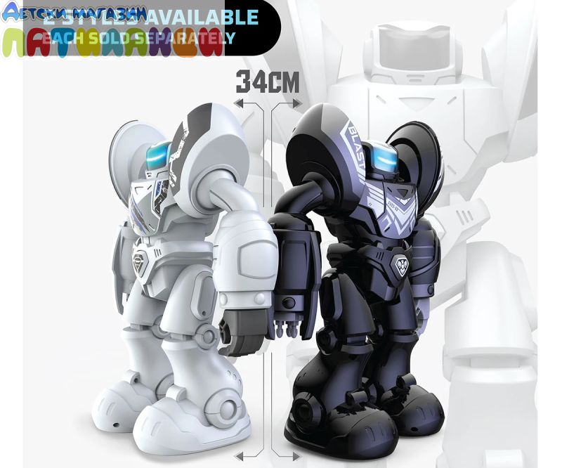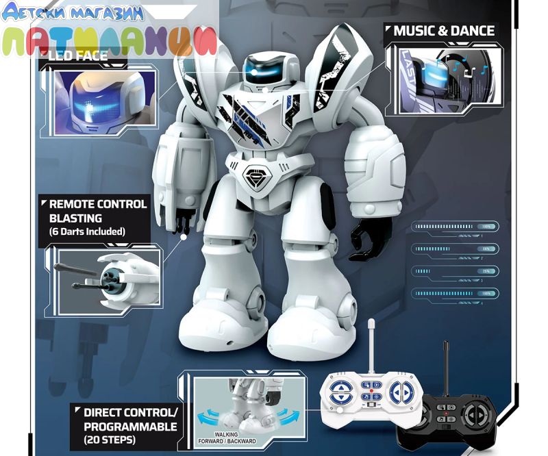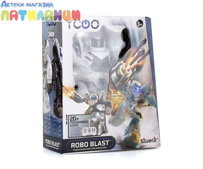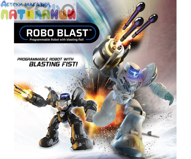 Интерактивен боен робот с дистанционно управление за деца, които изпитват предизвикателства. Представяме ви Robo Blast с повече от 20 програмни стъпки! Роботът, който изстрелва ракети от ръката си е идеалният избор за деца, които обичат приключенията и роботите! Това е усъвършенстван робот с дистанционно управление, който позволява на децата да се управляват лесно и да се насладят на една от готините функции за стрелба с ракети, с ефективен външен вид, роботът изстрелва ракети от ръката си, предавайки живот и енергия, и добавя пикантност към познатата игра с робот с дистанционно управление. В допълнение към способността си да "изстрелва" ракети, роботът е оборудван и с допълнителни опции за управление, като програмиране на действие, танцов режим и други готови действия, които стават идеална играчка за деца от всички възрасти. Това е забавна,