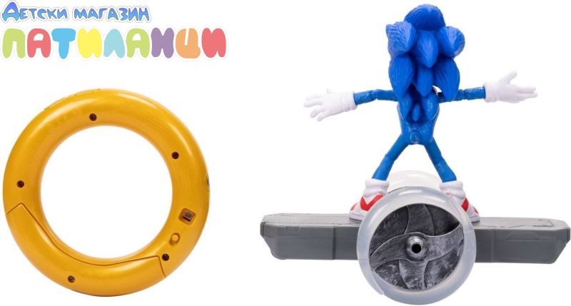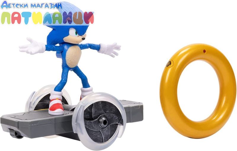 Комплектът включва подвижна Sonic фигура, R/C скейтборд и контролер Gold Ring. Контролерът е вдъхновен от пръстените на Sonic от видеоигрите Sonic the Hedgehog™ и има 3 бутона за пълен контрол: напред, завъртане и завъртане на 360 градуса, както и Turbo режим, който осветява колелата за този допълнителен тласък! Sonic Skate R/C е в мащаб приблизително 1:5 с дизайн, вдъхновен от видеоигрите Sonic the Hedgehog™.