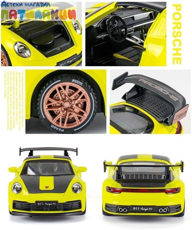 Метална кола Porsche 911 997 Targa 4s 1:32 жълт