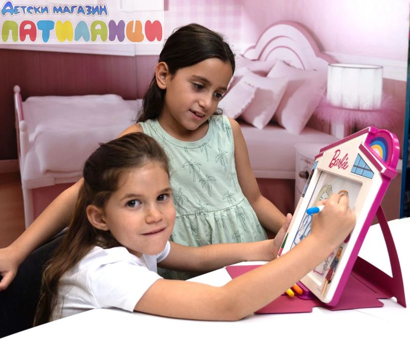 Класическа магнитна дъска за рисуване. Рисувайте и изтривайте на цветната магнитна дъска за рисуване. Обърнете дъската и открийте повърхността за прехвърляне с героини на Барби за още по-забавни дейности! Възраст: 3+. Начертайте безброй рисунки, където и да сте с дъската Пиши-Изтрий с Барби. Платно, магическа гумичка, печат и магическа магнитна химикалка дава възможност на детето да пише и три безброй пъти. Така че забавлението няма граници! Най-добрият избор за занимание на детето в и извън дома, тъй като това може да носи със себе си, където и да отиде и да направи компания на любимите си герои. Заедно в колата, на разходка, в къщата на приятел или дори в ресторанта със семейството, детето остава творческо заето. Пишете, изтривайте незабавно и натиснете всичко отначало! Идеален за подарък, той помага за усъвършенстване на въображението и себеизразяването на детето. Освен това не е нужно да се използвате, че ще се изцапа или изцапа къщата или колата. Вече не е нужно да се прилагате за боядисване на несъвършенства, тъй като можете да изтривате и рисувате колкото пъти искате!