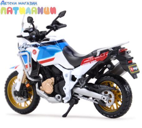 Добавете стил и авантюристки дух към своята колекция с макета на емблематичния мотор Honda Africa Twin Adventure от Bburago в мащаб 1:18.