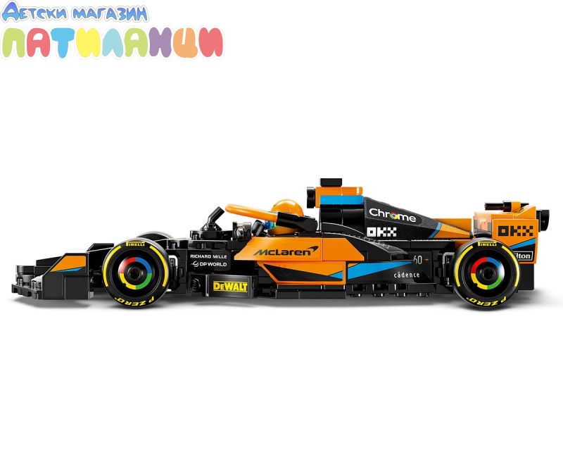 Отпразнувайте 60-ата годишнина на екипа на McLaren Racing със състезателната кола 2023 McLaren Formula 1 – елегантната и динамична състезателна кола, която се състезаваше в световния шампионат на Формула 1. Съберете, постройте и изложете на показ репликата от LEGO® Speed Champions, включваща детайли от дизайна на оригиналната кола. Комплектът за игра включва и минифигура на пилот с каска за организиране на вълнуващи състезания по пистата.