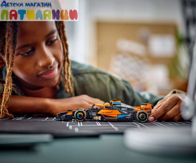Момчета и момичета на възраст над 9 години могат да събират, конструират и излагат на показ превозното средство LEGO® Speed Champions Състезателна кола 2023 McLaren Formula 1 (76919). Елегантната кола от Формула 1 включва няколко емблематични детайла от дизайна на реалния състезателен автомобил, който гордо отпразнува 60-ата годишнина на McLaren Racing и се състезава в световния шампионат на Формула 1 през 2023 г. Моделът на автомобила McLaren включва много реалистични характеристики: дизайн в черно и папая, емблеми на спонсорите на отбора, колела с надпис Pirelli и система за безопасност на пилота в цвят папая. Комплектът за конструиране на кола се предлага и с минифигура на пилот, която децата да поставят зад волана за вълнуващи състезания. Комплектите LEGO Speed Champions позволяват на децата и запалените фенове на автомобили да построят реплики на някои от най-емблематичните превозни средства в света. Те с удоволствие ще създават висококачествени модели от тухлички LEGO, включващи отличителни детайли. Всяка кола може да бъде създадена с приложението LEGO Builder, което направлява вас и вашето дете в едно лесно и интуитивно строително приключение.