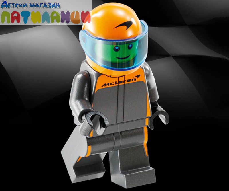 1 минифигура – колата McLaren за конструиране включва минифигура на пилот с каска, перука и гаечен ключ, която децата да поставят зад волана и да организират скоростни състезания по пистата на Формула 1;