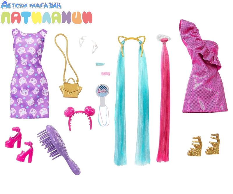 Име: Кукла Barbie - Комплект с много дълга цветна коса за прически