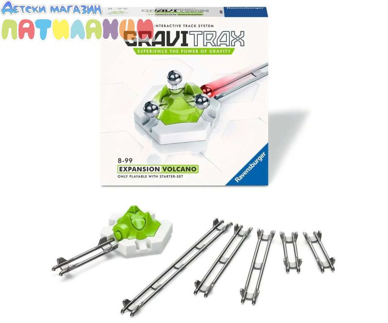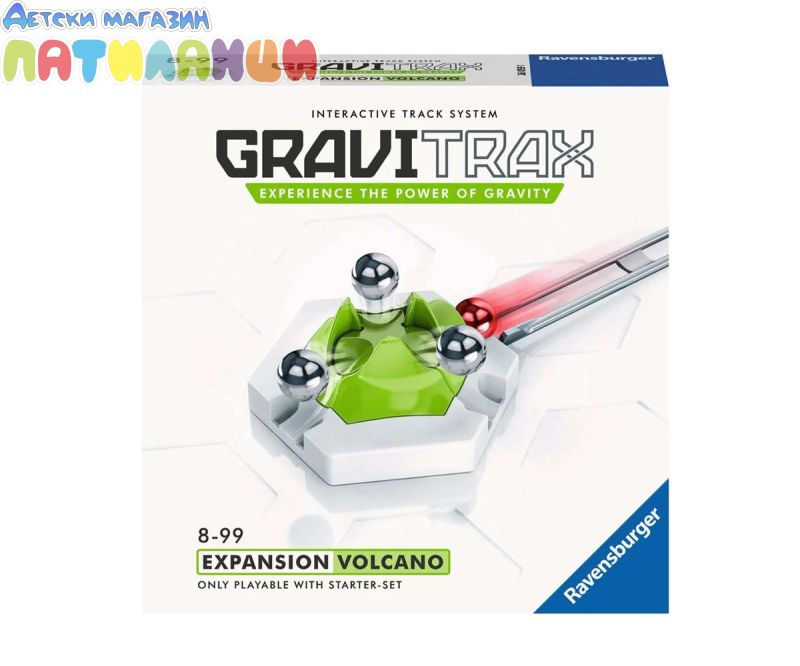 GraviTrax е система за писти от Ravensburger! Използвайте въображението си, за да създавате изпълнени с действие релси и да изследвате света на физиката, като хвърляте своите топчета върху тях. Изследвайте силата на гравитацията и стимулирайте въображението си с комплектите Gravitrax! Изригнете три топчета върху пистите си с „GraviTrax Volcano“!