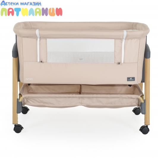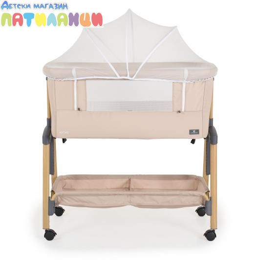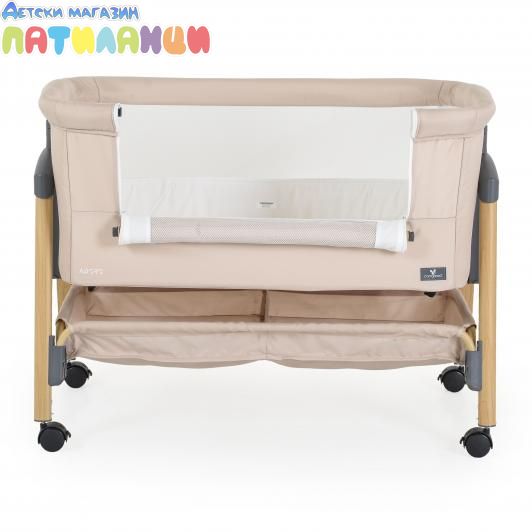Леглото е изработено от висококачествени материали, които са приятни на допир и лесни за поддръжка. Подходящо е както за новородени, така и за по-големи бебета, благодарение на стабилната рамка и удобната повърхност за спане.