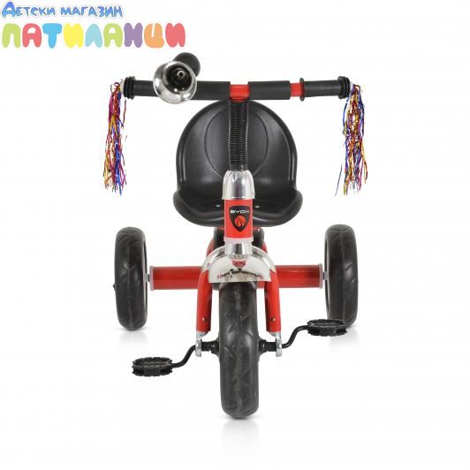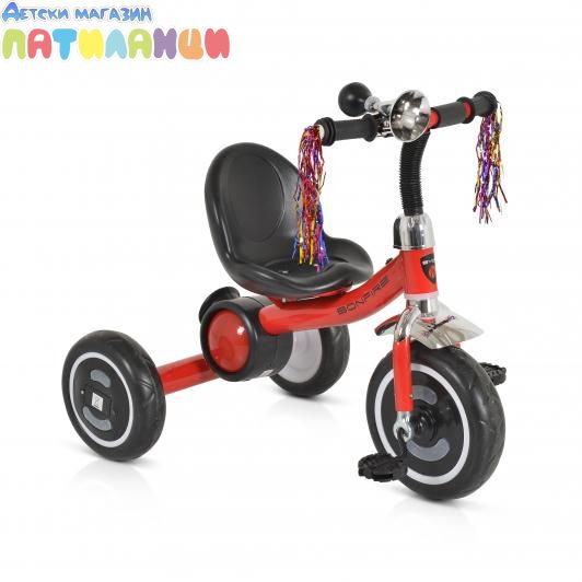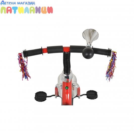 Продуктът е с меки EVA гуми, удобна седалка, клаксон, светлини на гумите, табло с мелодии и светлини.
