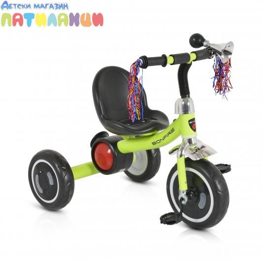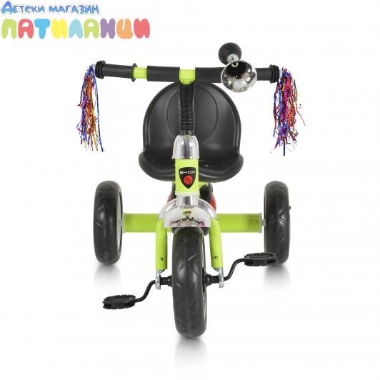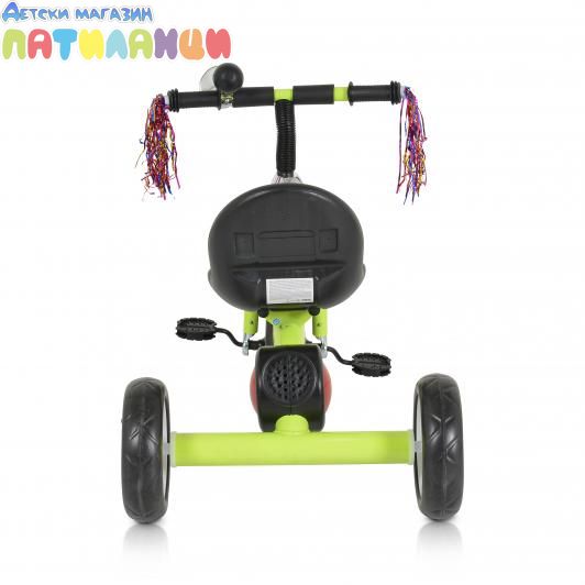 Продуктът е с меки EVA гуми, удобна седалка, клаксон, светлини на гумите, табло с мелодии и светлини.