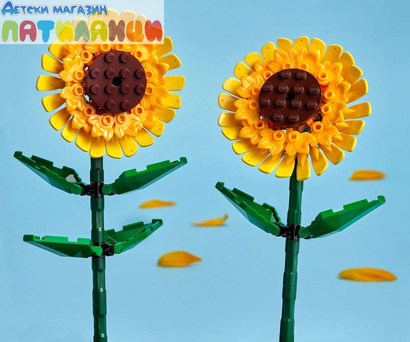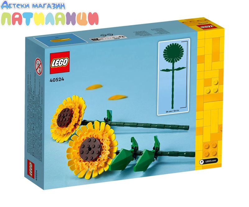 Постройте слънчогледи, изпълнени с радост. Слънчогледите моментално разведряват обстановката и носят оптимизъм. Вече можете да построите собствен модел на това любимо цвете със строителния комплект LEGO® Слънчогледи (40524). Създайте забележителни слънчогледи или смесен букет, като добавите комплектите LEGO Рози (40460), LEGO Лалета (40461) или LEGO Букет цветя (10280) (всеки се продава отделно). Също така е чудесен подарък за Деня на майката или просто без повод.