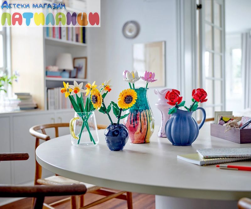 Комбинирайте с други комплекти – можете да излагате LEGO® Слънчогледи самостоятелно или като ги комбинирате с комплектите LEGO Рози (40460), LEGO Лалета (40461) или LEGO Букет цветя (10280) – всеки се продава отделно;