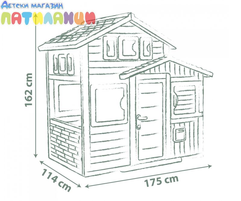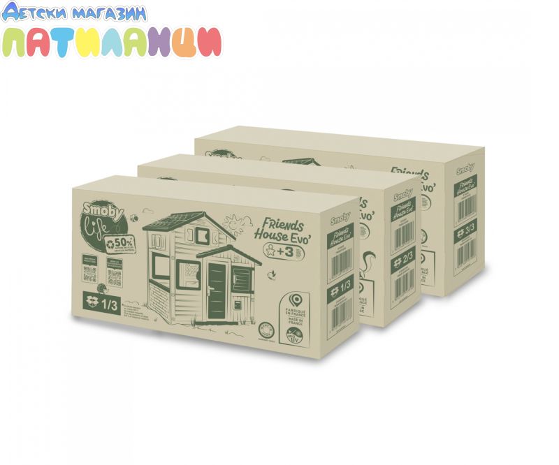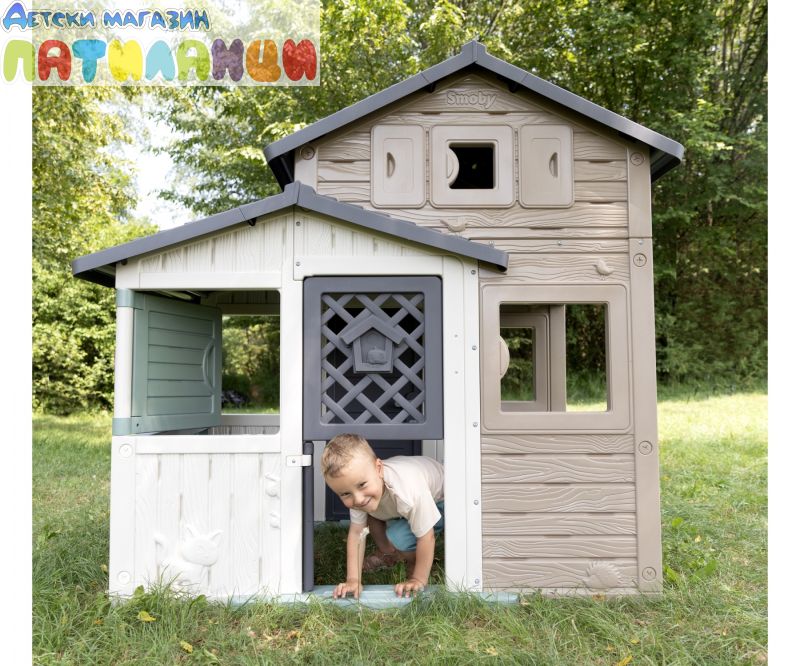 Открийте игрива приключенска земя в собствената си градина! Нашата голяма къща за игра Smoby Life Evo Friends предлага безкрайни възможности за разходка, катерене и криене. Идеалното място за децата да развихрят въображението си и да преживеят незабравими приключения.