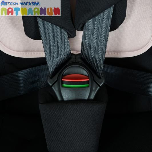 - 5 -точков предпазен колан с цветови индикатор а именно: при разкопчан колан – индикатор в червен цвят ,при правилно закопчан колан – индикатор в зелен цвят;