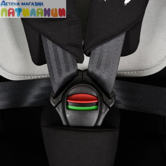 - 5 -точков предпазен колан с цветови индикатор а именно: при разкопчан колан – индикатор в червен цвят ,при правилно закопчан колан – индикатор в зелен цвят;