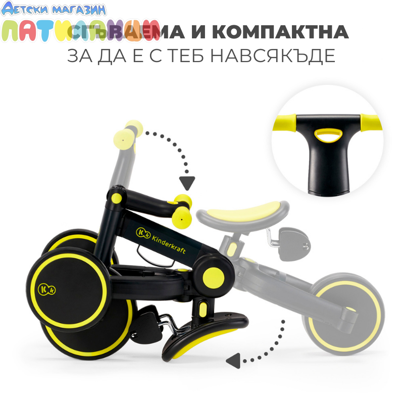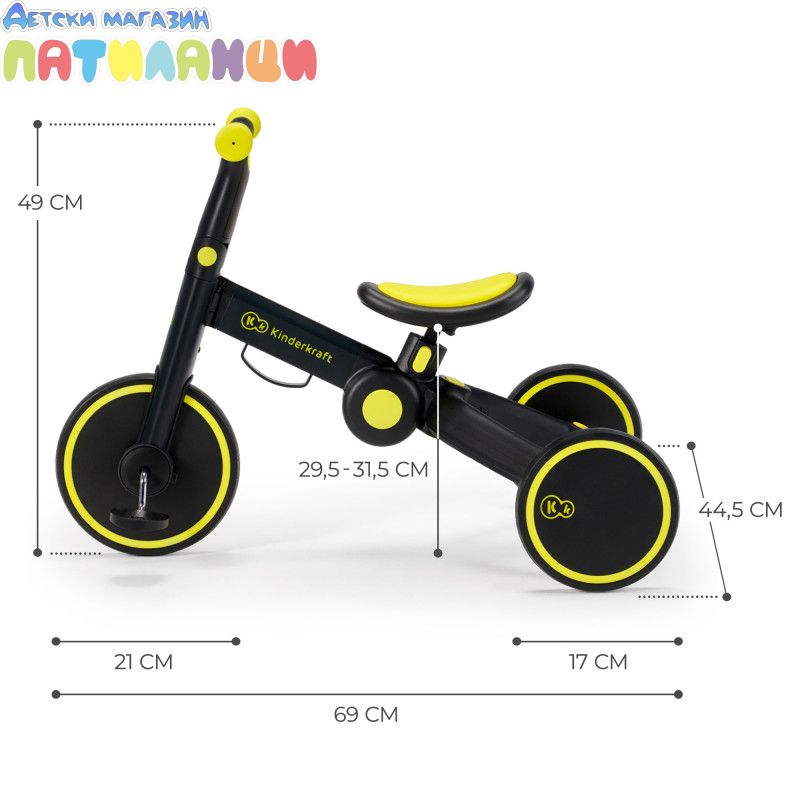 Детска сгъваема триколка Kinderkraft 4trike 3в1 Black