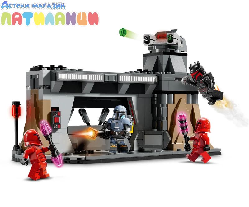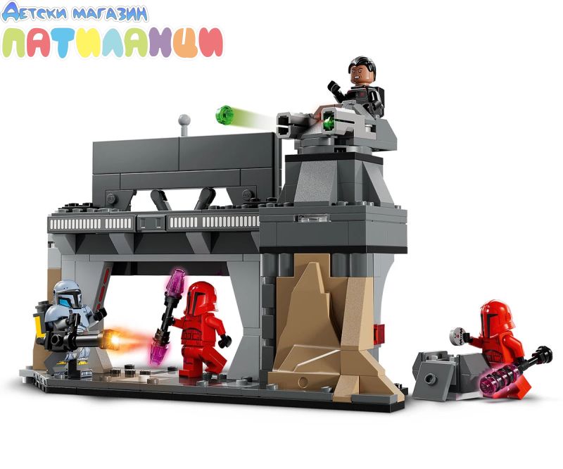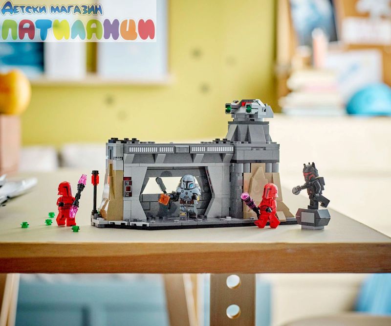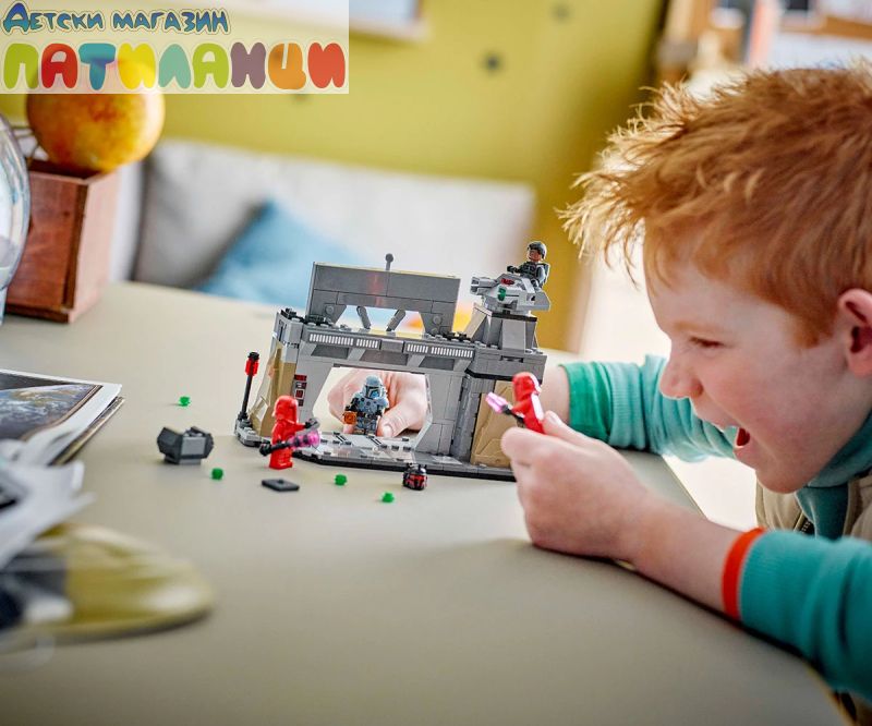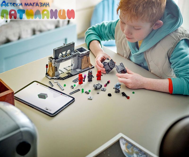 Конструиране, игра и показване – мандалорската база в комплекта от 289 части е с височина 12 см, ширина 20 см и дълбочина 8 см.