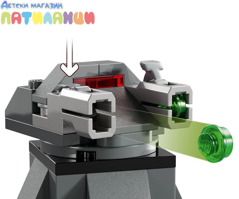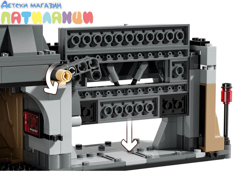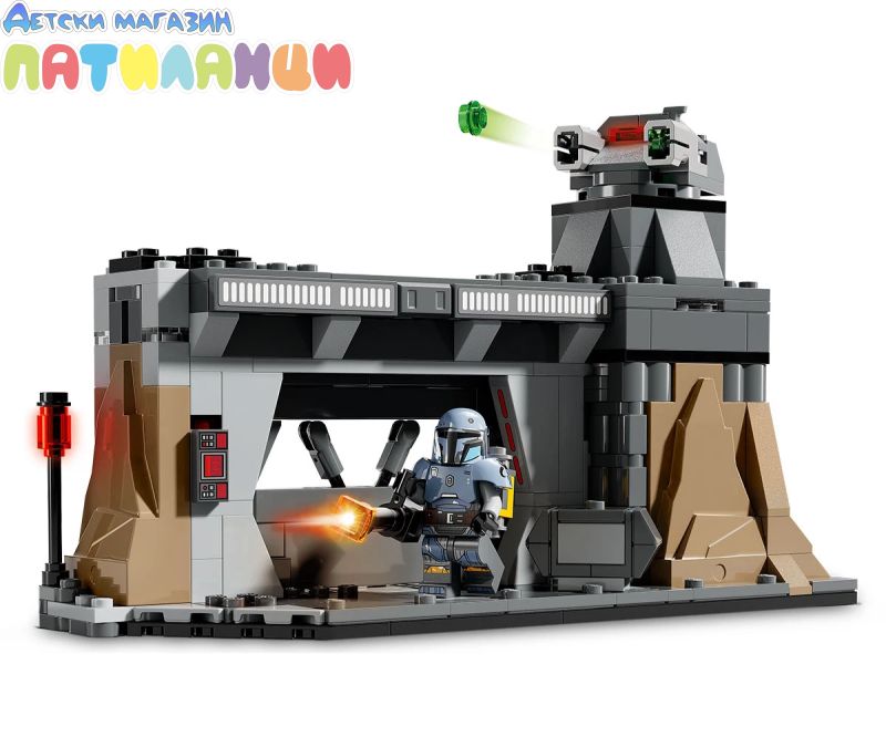 Играчка за построяване Star Wars™ за деца – мандалорската база в този комплект разполага с тежка блиндирана врата със затваряща ръчка, контролни табла и въртяща се стреляща оръдейна кула.