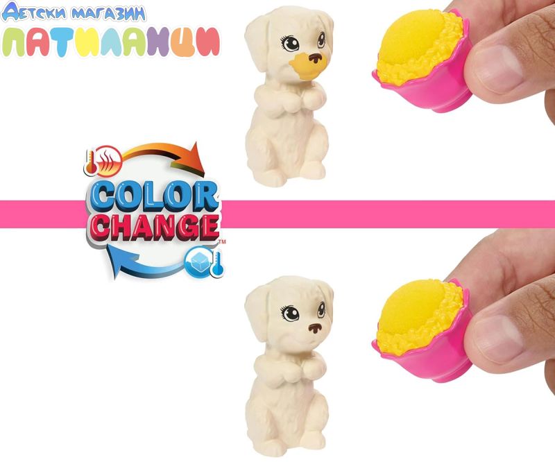 За повторна забавна промяна на цвета, нанесете ледено студена вода с гъбата за да промените лицето на кученцето от чисто на маслено. Използвайте гъбата с топла вода, за да избършете обратно!