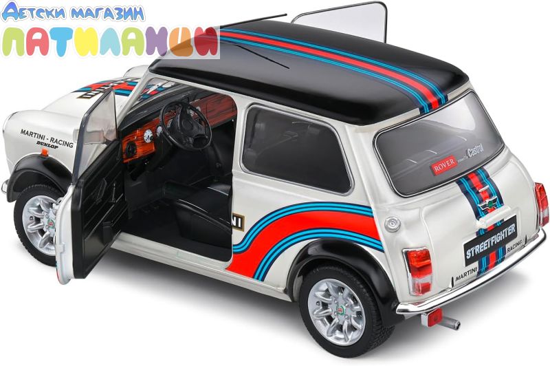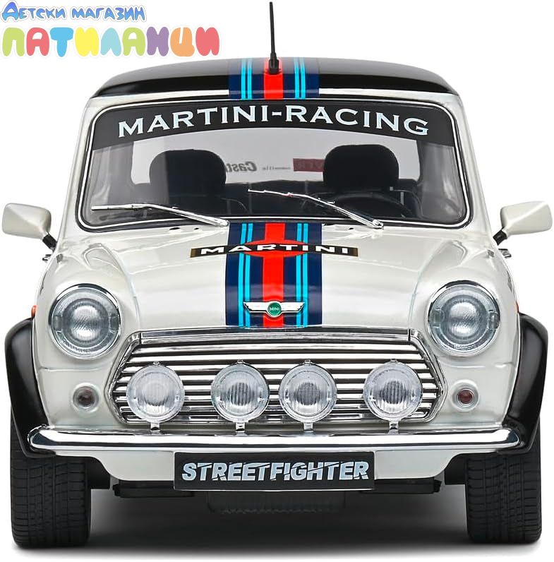 Колекционерски метален модел автомобил на Mini Cooper Sport Martini в мащаб 1:18 от SOLIDO . Каталожен номер: 1800610