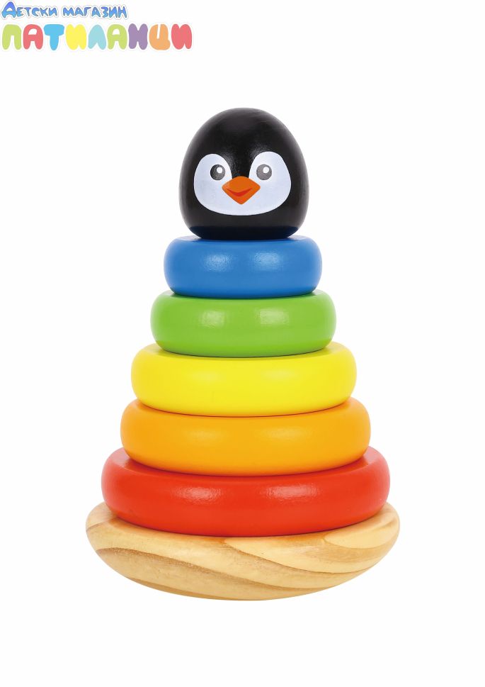 Дървена Бебешка низанка Пингвин Tooky Toy TKB502