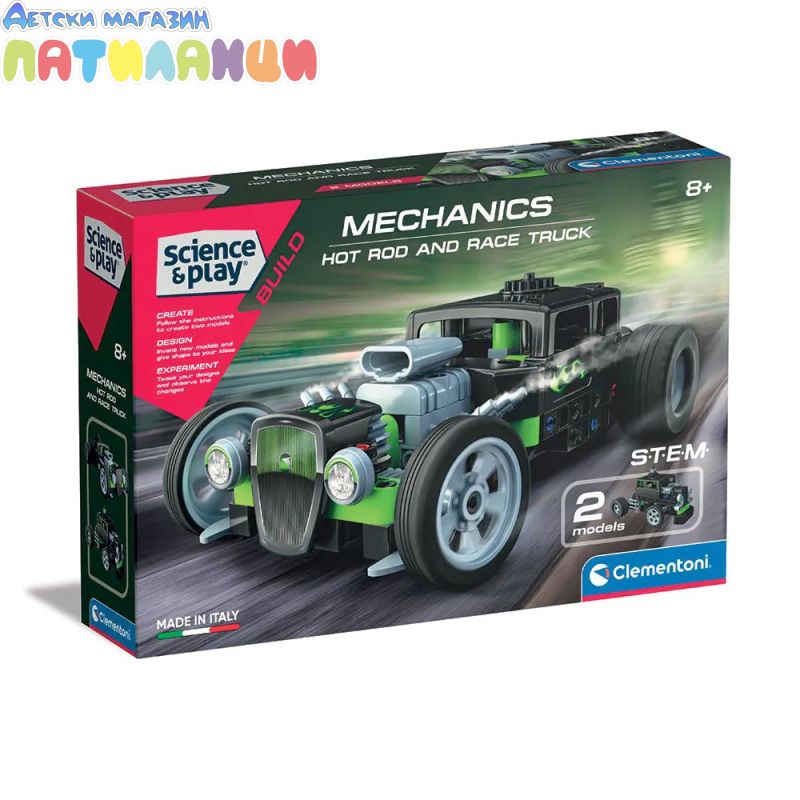 Механична научна лаборатория, с която да се забавляваш и сглобяваш два различни модела - автомобил с форсиран двигател или състезателен камион. Комплектът съдържа над 120 части за изграждане на 2 различни модела, оборудвани с трансмисионни механизми. Много специални компоненти като трансмисионен модул, скорости и други позволяват да се подобри възпроизвеждането на превозните средства. Научна игра, която стимулира креативността, сръчността и която те доближава до принципите на механиката и инженерството. Предизвикай се - измисли и си представи възможни решения и монтажи.