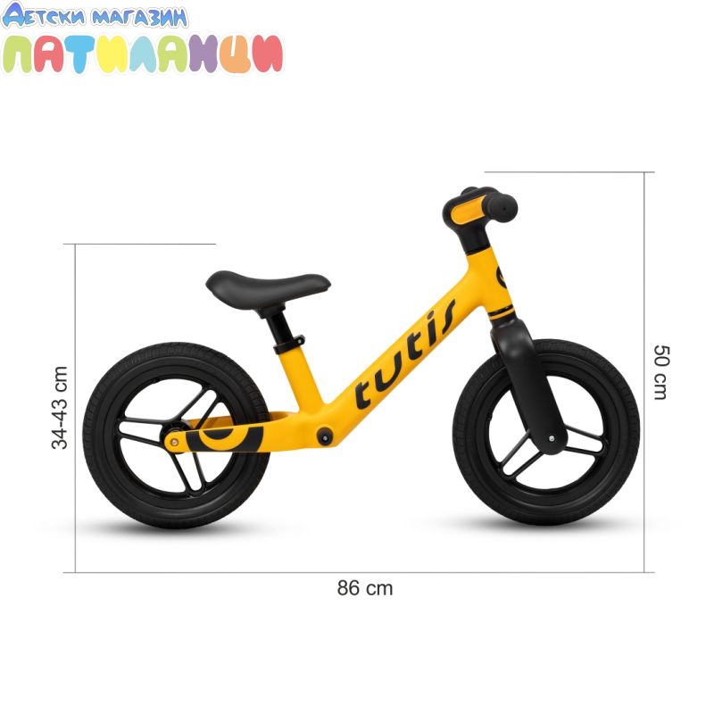 Новият Tutis Balance Bike е сбъдната мечта за малките приключенци. Проектиран за деца с височина 90-115 см, този велосипед гарантира, че всяко каране е радостно изживяване. Със своите здрави 12-инчови колела вашето дете се вози без усилие, придобивайки увереност с всяко крачка. Дръжките с покритие против хлъзгане осигуряват стабилно захващане, поддържайки малките ръце стабилни.