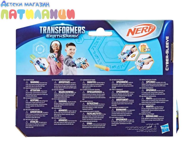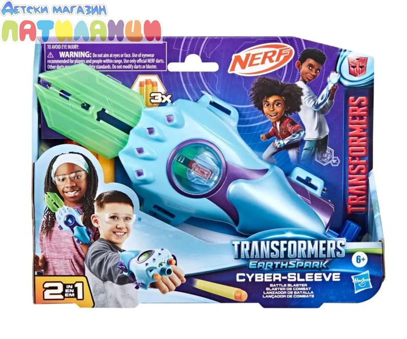 Пригответе се за епични приключения с Transformers: EarthSpark Cyber-Sleeve Battle бластер за ръка! С 2 начина, по които децата могат да си представят битка с десептикони, тази супер готина играчка бластер извежда играта на преструвки на съвсем ново ниво. Децата могат лесно да заредят и изстрелят стрелички Nerf или да замахнат с ръка, за да разкрият Cyber-Sword на Mo Malto, точно както в шоуто! Регулируемите презрамки осигуряват удобно прилягане за деца на възраст над 6 години. Потърсете още играчки Transformers: EarthSpark, включително страхотни екшън фигурки Transformers (продават се отделно, в зависимост от наличността), за да развихрите въображението на децата! Ролевите играчки като Cyber-Sleeve са страхотни подаръци за момчета и момичета, които обичат анимационния сериал Transformers: EarthSpark.