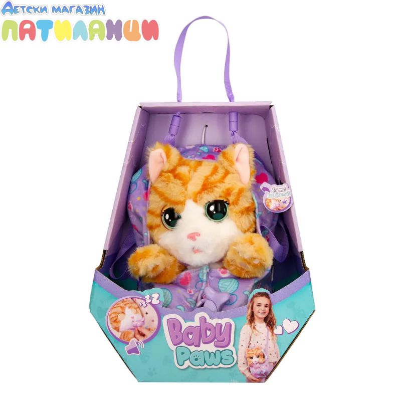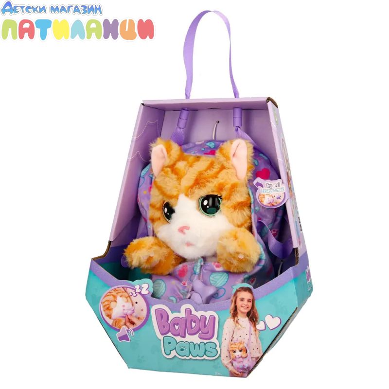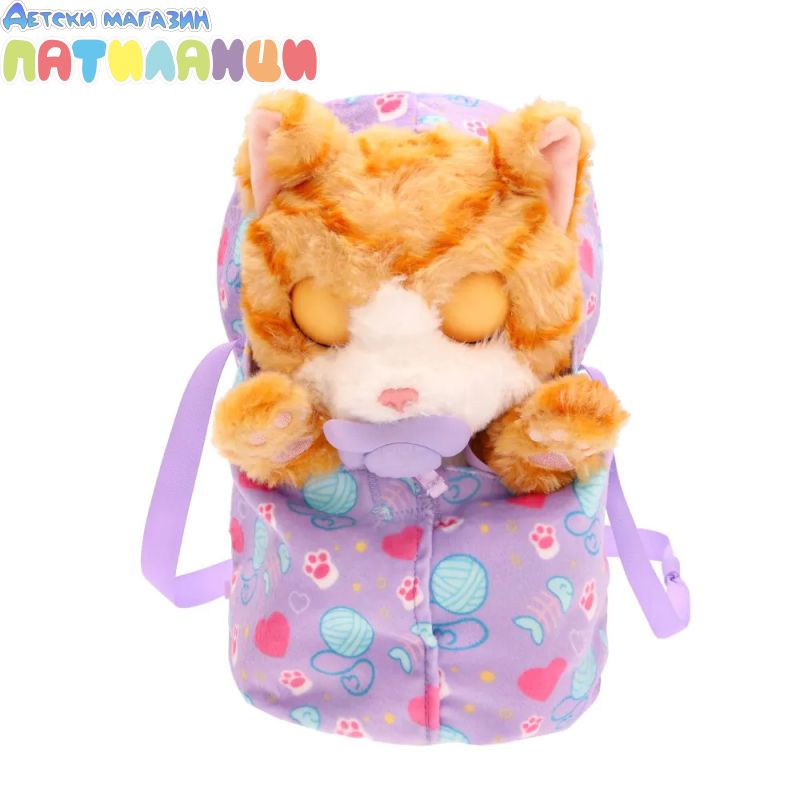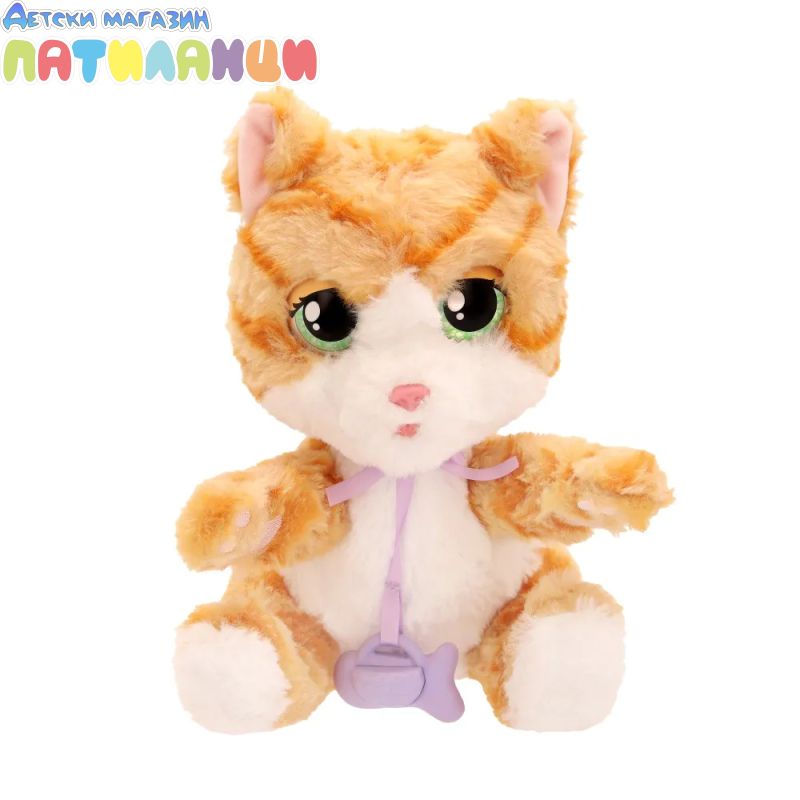 Най-очарователното котенце, толкова мило и сладко, че е невъзможно да не го харесаш! Има си два аксесоара: одеялце с красива шарка, която съответства на индивидуалността му, и любим биберон. Когато биберонът е в устата му, котенцето заспива. Като извадиш биберона, очите му се отварят и издава най-сладките звуци! Можеш да движиш малките му лапчки и главичка.