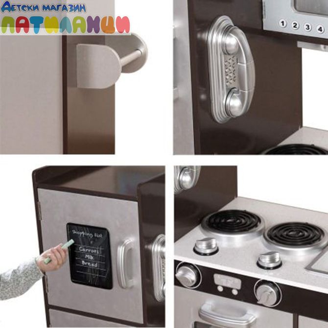 Дизайнът и конструкцията са в неутрални цветове, което я прави подходяща за всяко пространство и всяко дете, за да разгърне кулинарния артист в себе си. Има различни елементи, които прави времето за игра по-забавно и интерактивно.