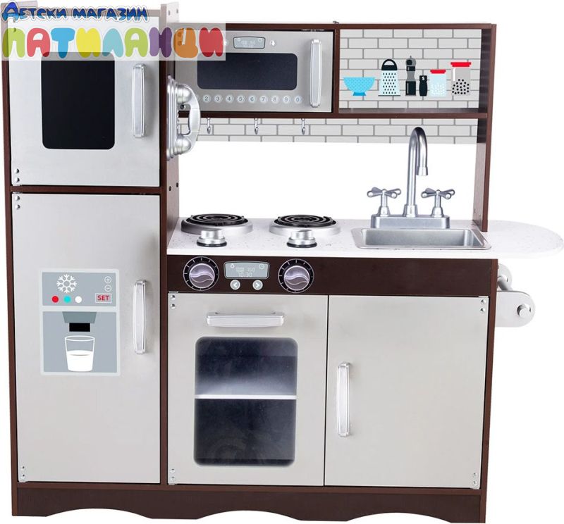 Всички основни уреди, които присъстват в една типична кухня, са включени в този детски кухненски комплект. Тази детска кухня за игра разполага с пълен хладилник, включително фризер с черна дъска и картинка дозатор за лед/вода.